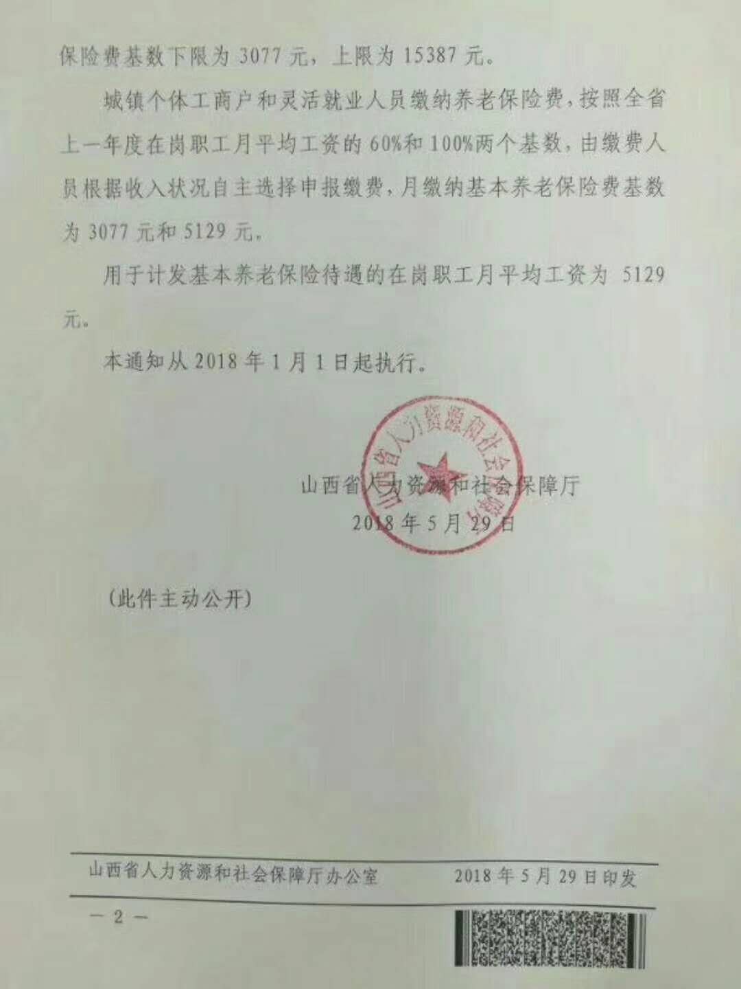 根據(jù)省統(tǒng)計(jì)局門戶網(wǎng)“山西統(tǒng)計(jì)信息網(wǎng)”2018年5月25日統(tǒng)計(jì)公告,2017年全省非私營單位在崗職工年平均工資為61547元(月平均工資為5129元),據(jù)此確定2018年度全省參加基本養(yǎng)老保險(xiǎn)職工個(gè)人繳納養(yǎng)老保險(xiǎn)費(fèi)基數(shù)的上下限,城鎮(zhèn)個(gè)體工商戶和靈活就業(yè)人員繳納養(yǎng)老保險(xiǎn)費(fèi)基數(shù),以及計(jì)算參保人員退休時(shí)養(yǎng)老金待遇。