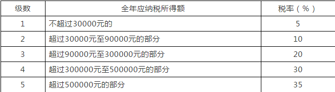 “(二)經(jīng)營所得,適用百分之五至百分之三十五的超額累進(jìn)稅率(稅率表附后);