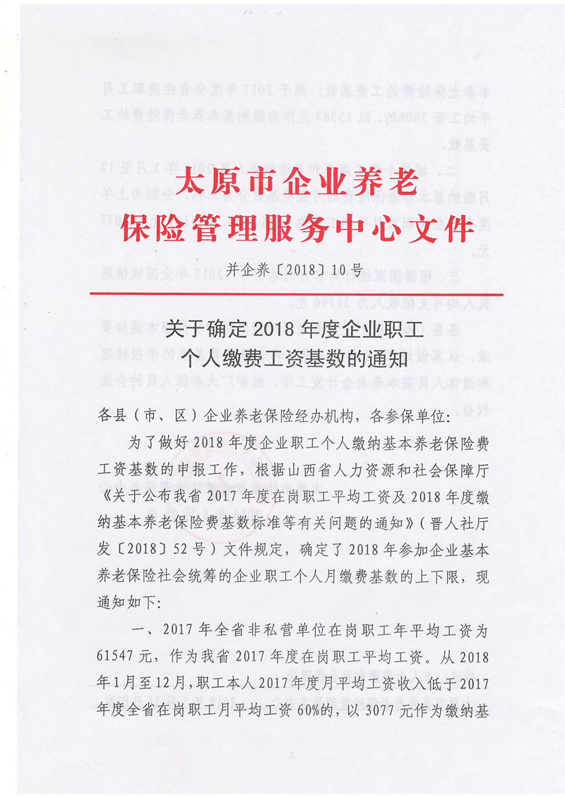 關(guān)于確定2018年度企業(yè)職工個人繳費工資基數(shù)的通知