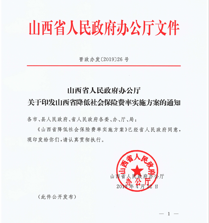 山西省人民政府辦公廳關(guān)于印發(fā)山西省降低社會(huì)保障費(fèi)率實(shí)施方案的通知