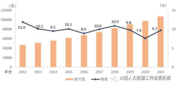 2021年全國城鎮(zhèn)非私營單位就業(yè)人員年平均工資為106837元,名義增長9.7%