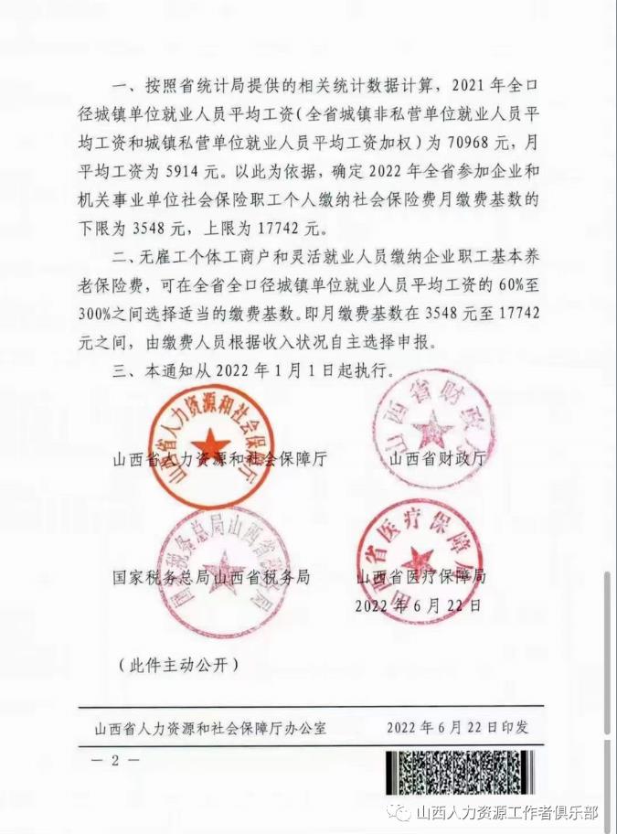 根據(jù)《山西省人民政府辦公廳關于印發(fā)山西省降低社會保險費率實施方案的通知》(晉政辦發(fā)〔2019〕26號)相關規(guī)定,現(xiàn)將2022年繳納社會保險基數(shù)標準等有關問題通知如下: