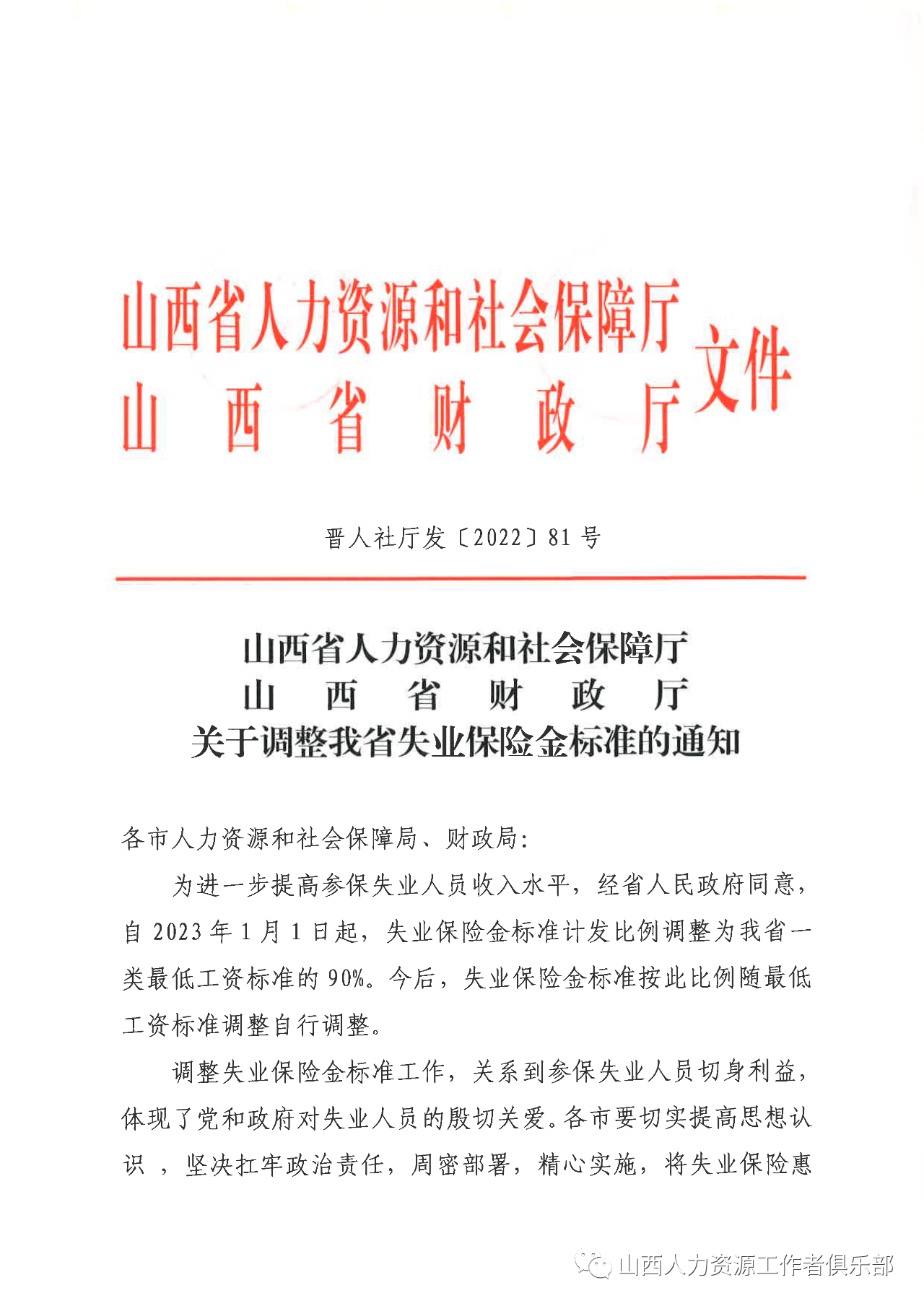 現(xiàn)將《山西省人力資源和社會保障廳 山西省財(cái)政廳關(guān)于調(diào)整我省失業(yè)保險(xiǎn)金標(biāo)準(zhǔn)的通知》(晉人社廳發(fā)〔2022〕81號)轉(zhuǎn)發(fā)給你們,請遵照執(zhí)行。