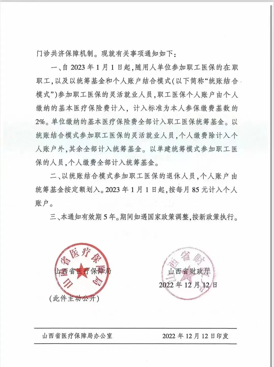 事關(guān)所有人醫(yī)保個人賬戶,在職職工每月按照繳費基數(shù)的2%計入,退休人員每月按照85元計入