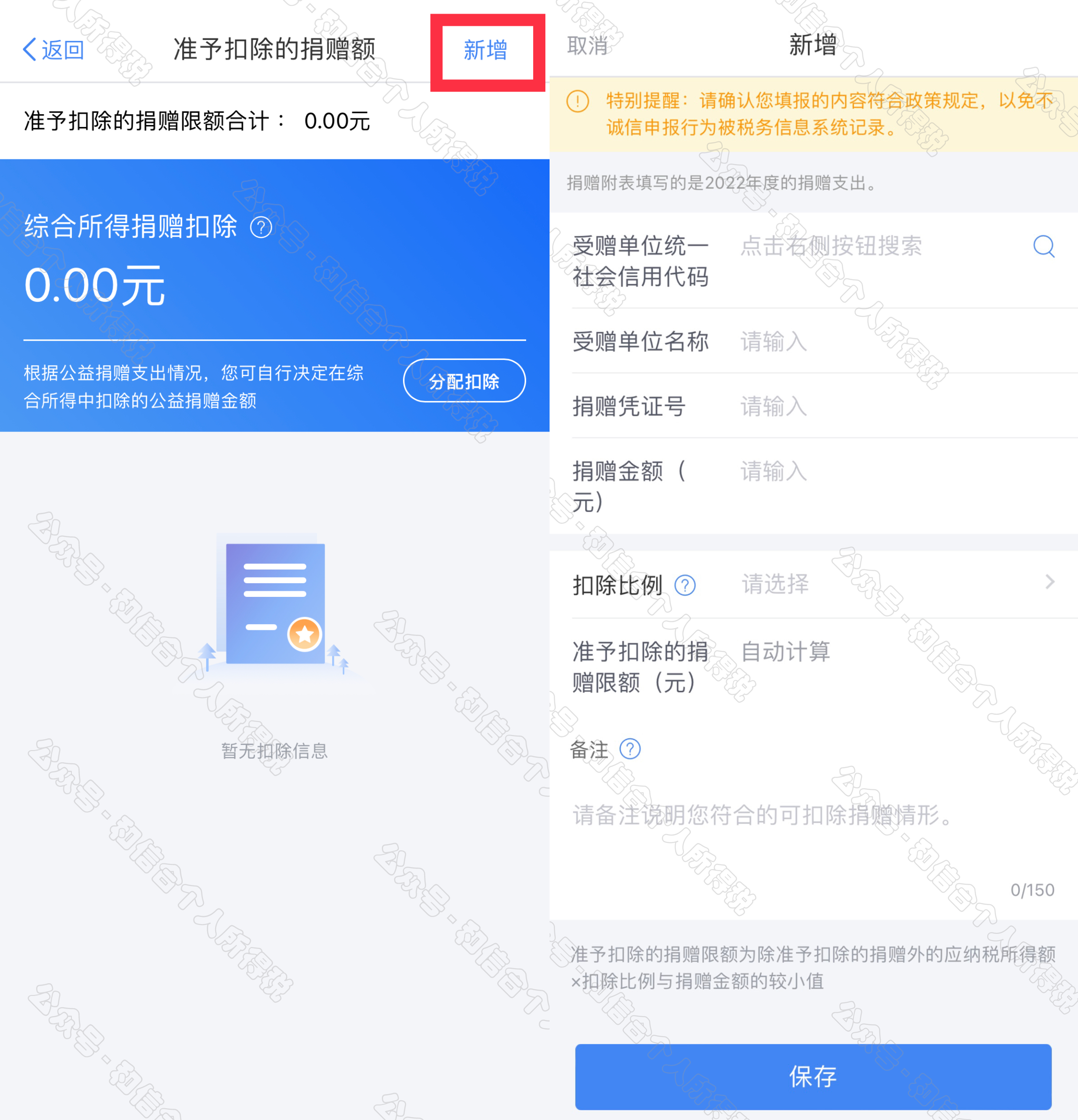 在準(zhǔn)予扣除的捐贈(zèng)額列表界面,您可進(jìn)行新增和修改。