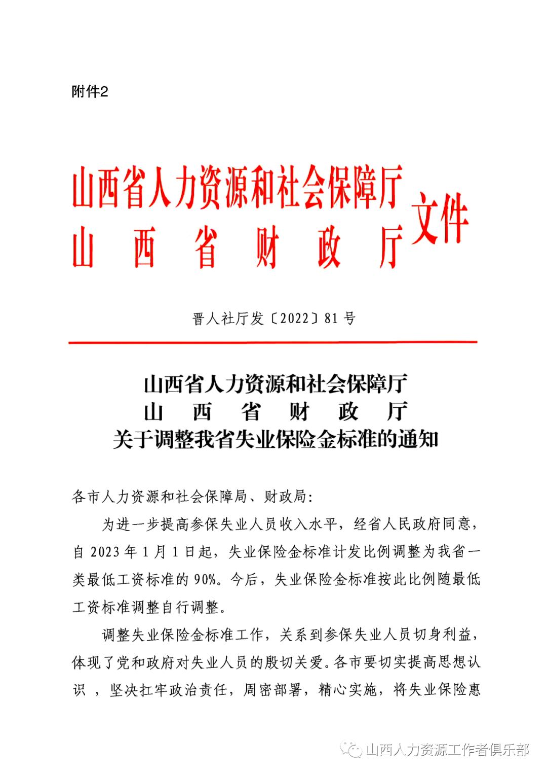 《山西省人力資源和社會保障廳 山西省財政廳關于調(diào)整我省失業(yè)保險金標準的通知》(晉人社廳發(fā)〔2022〕81號)