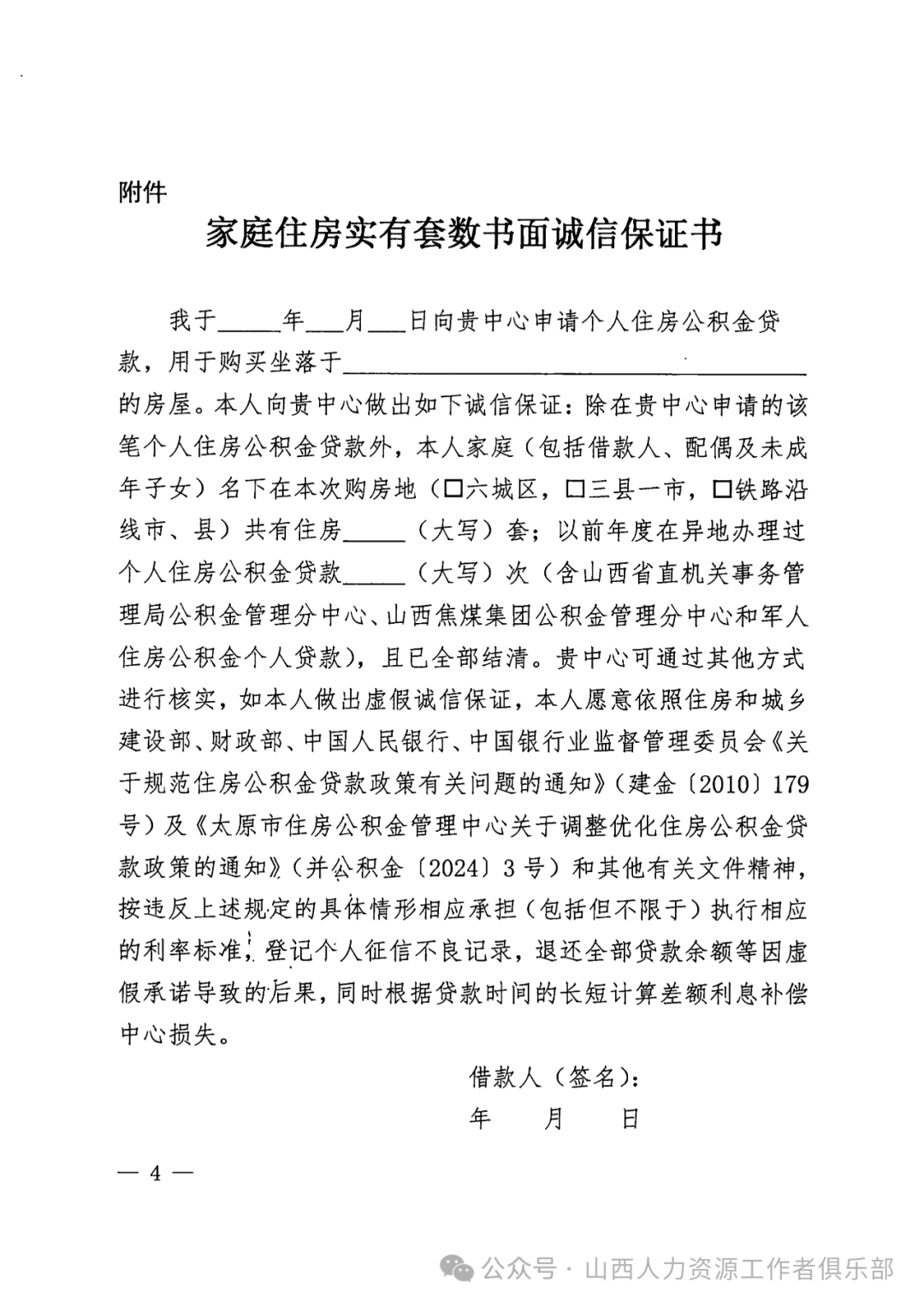 6.在太原市六城區(qū)購房的,以六城區(qū)房屋套數(shù)認定;在三縣一市和鐵路沿線市(縣)購房的,以購房市(縣)房屋套數(shù)認定。繳存職工申請貸款的,其房產(chǎn)記錄由中心工作人員通過信息系統(tǒng)聯(lián)網(wǎng)核查取得,三縣一市、鐵路分中心繳存職工購買住房申請住房公積金貸款的,應(yīng)由其提供其購房地不動產(chǎn)登記部門出具的書面房產(chǎn)查詢結(jié)果;住房公積金貸款記錄通過全國住房公積金監(jiān)管 服務(wù)平臺、公積金管理信息系統(tǒng)、異地貸款職工住房公積金繳存使用證明及繳存職工個人征信報告等有關(guān)渠道取得。繳存職工辦 理貸款時需同時簽署《家庭住房實有套數(shù)書面誠信保證書》。