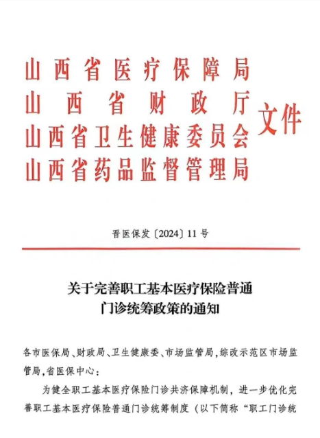 為健全職工基本醫(yī)療保險(xiǎn)門診共濟(jì)保障機(jī)制,進(jìn)一步優(yōu)化完善職工基本醫(yī)療保險(xiǎn)普通門診統(tǒng)籌制度(以下簡稱“職工門診統(tǒng)籌”),切實(shí)減輕參保職工門診醫(yī)療費(fèi)用負(fù)擔(dān),現(xiàn)就有關(guān)事項(xiàng)通知如下:一、穩(wěn)步提高待遇水平。職工門診統(tǒng)籌年度******支付限額在職職工提高至2500元,退休人員提高至3000元。繼續(xù)執(zhí)行按次起付標(biāo)準(zhǔn),參保職工年度起付累計(jì)達(dá)到300元,不再設(shè)起付標(biāo)準(zhǔn)。在一類、二類、三類收費(fèi)價(jià)格及以下收費(fèi)類別定點(diǎn)醫(yī)療機(jī)構(gòu)在職職工支付比例提高至55%、60%、65%,退休人員提高至60%、65%、70%;定點(diǎn)零售藥店的支付比例按照三類收費(fèi)價(jià)格及以下收費(fèi)類別定點(diǎn)醫(yī)療機(jī)構(gòu)支付比例執(zhí)行。參保職工跨統(tǒng)籌地區(qū)享受門診統(tǒng)籌待遇,按照《關(guān)于進(jìn)一步做好參保職工普通門診異地就醫(yī)直接結(jié)算工作的通知》(晉醫(yī)保辦發(fā)[2023]12號)規(guī)定執(zhí)行。乙類藥品先行自付比例統(tǒng)一調(diào)整為 5%。二、持續(xù)優(yōu)化管理服務(wù)。堅(jiān)持應(yīng)納盡納,及時(shí)將符合條件的定點(diǎn)醫(yī)療機(jī)構(gòu)、定點(diǎn)零售藥店納入門診統(tǒng)籌服務(wù)范圍。持續(xù)優(yōu)化完善******流轉(zhuǎn)平臺功能,加快定點(diǎn)零售藥店開通進(jìn)度,為參保職工就醫(yī)購藥提供便利。完善醫(yī)保服務(wù)協(xié)議,細(xì)化經(jīng)辦管理措施,優(yōu)化門診統(tǒng)籌經(jīng)辦規(guī)程,暢通群眾就醫(yī)購藥結(jié)算渠道。加強(qiáng)基金監(jiān)管,完善監(jiān)管手段和措施,******推進(jìn)智能審核和監(jiān)控,確?;鸢踩?/span>三、切實(shí)加強(qiáng)醫(yī)療服務(wù)。衛(wèi)生健康和藥監(jiān)部門要指導(dǎo)門診統(tǒng)籌定點(diǎn)醫(yī)藥機(jī)構(gòu)進(jìn)一步強(qiáng)化門診醫(yī)藥服務(wù)保障,切實(shí)提升參保職工就醫(yī)購藥便捷度。各級定點(diǎn)醫(yī)療機(jī)構(gòu)要開設(shè)便民門診服務(wù),為病情穩(wěn)定、用藥固定的慢性病患者復(fù)診提供便利,降低就醫(yī)掛號成本;鼓勵設(shè)立老年人就醫(yī)綠色通道,積極落實(shí)長期******制度,按規(guī)定為符合條件的慢性病患者開具長期******,讓患者就醫(yī)購藥少排隊(duì)、少跑腿;要配合醫(yī)保經(jīng)辦機(jī)構(gòu)改造完善信息系統(tǒng)、優(yōu)化業(yè)務(wù)流程,確保醫(yī)保結(jié)算和退費(fèi)等流程順暢。衛(wèi)生健康部門要指導(dǎo)各級醫(yī)療機(jī)構(gòu)適應(yīng)參保職工用藥需求,優(yōu)化藥品配備結(jié)構(gòu),配齊配足常用藥品,方便群眾就近就醫(yī)購藥。本通知自2024年7月1日起施行,有效期5年,之前文件與本通知不一致的,按本通知執(zhí)行。